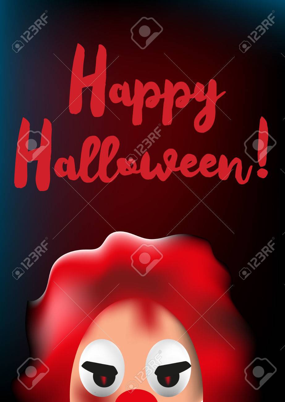 Happy Halloween Poster Or Greating Card With Scary Clown