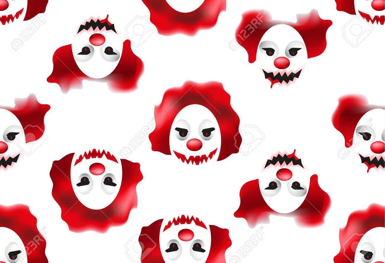 Happy Halloween Seamless Pattern With Creepy And Scary Clown