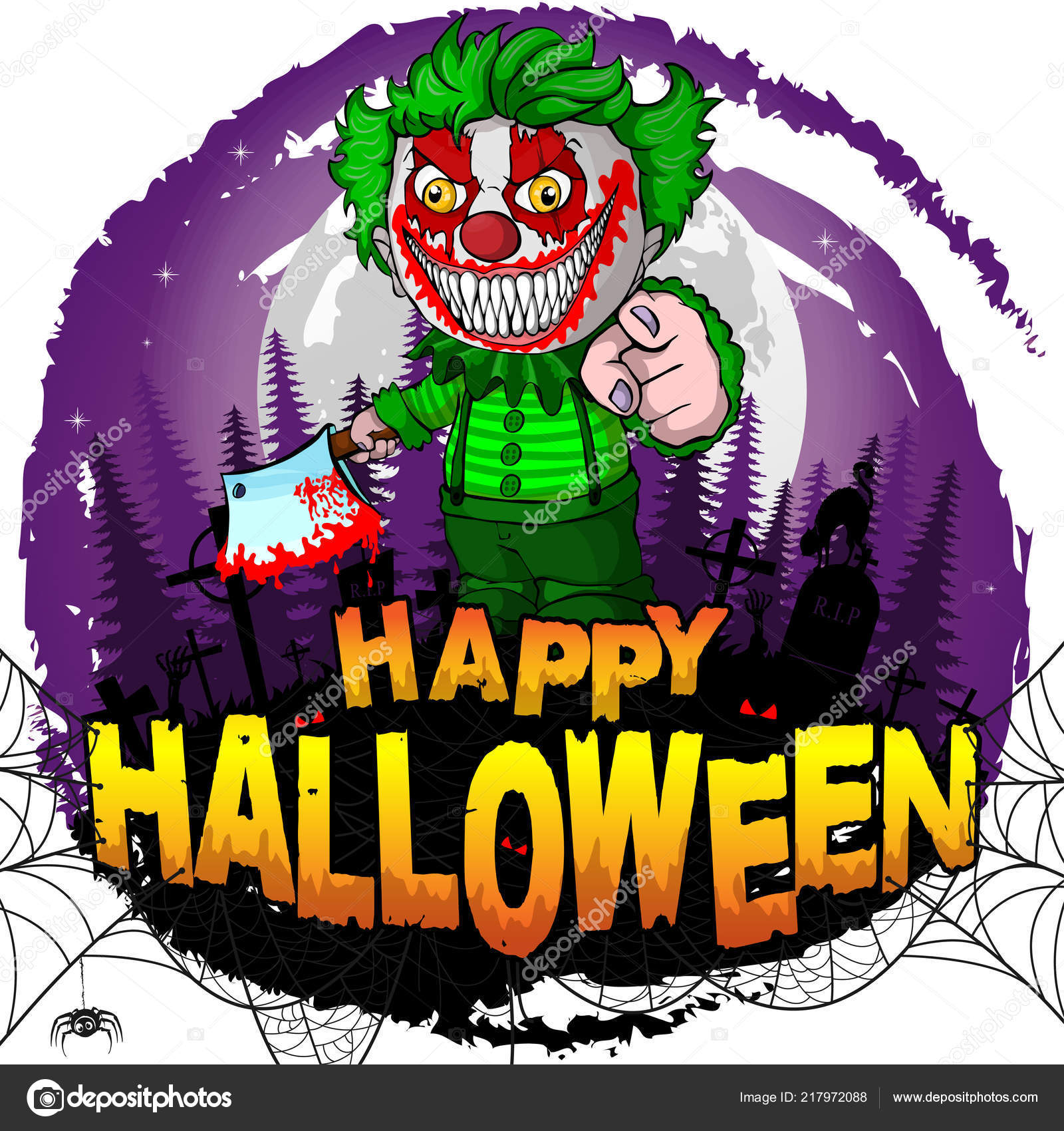 Vector Stock Happy Halloween Evil Clown Skull Stock Clip