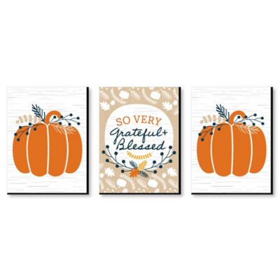 Happy Thanksgiving Grateful And Blessed Wall Art Pumpkin Room Decor And Fall Decorations 7 5 X 10 Inches Set Of 3 Prints