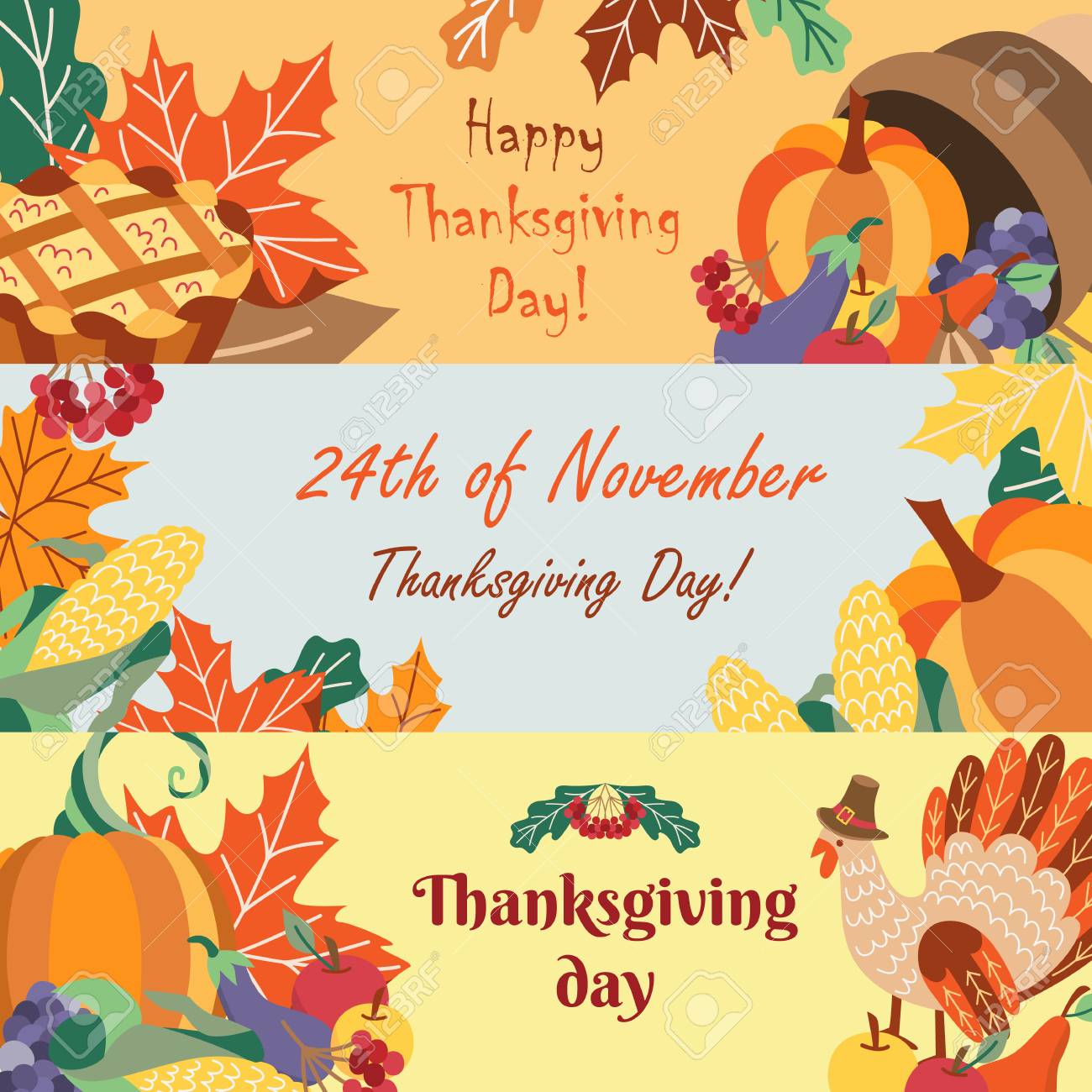 Set Of Happy Thanksgiving Day Web Banners Autumn Holiday