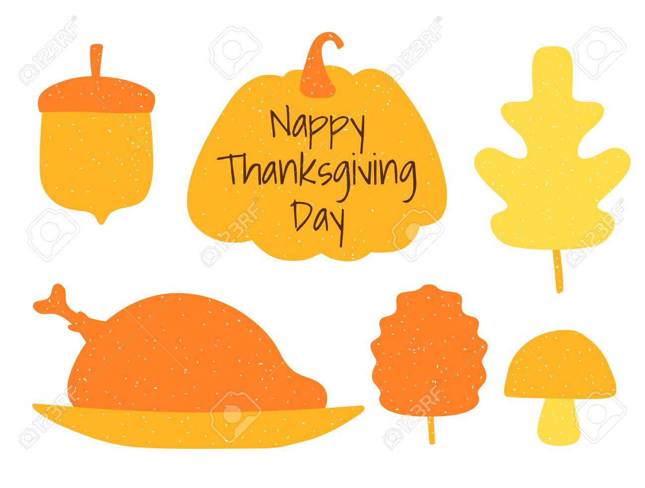 Set Of Happy Thanksgiving Day Holiday Objects And