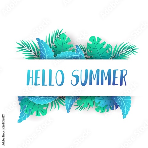 Hello Summer Tropical Design With Paper Leaves Isolated On