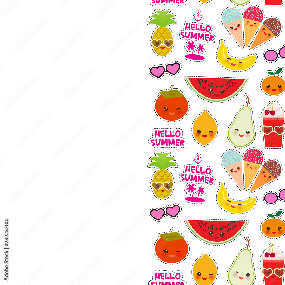 Hello Summer Tropical Fruit Pattern Greeting Card Gl Stock