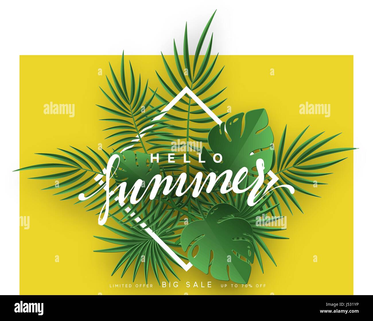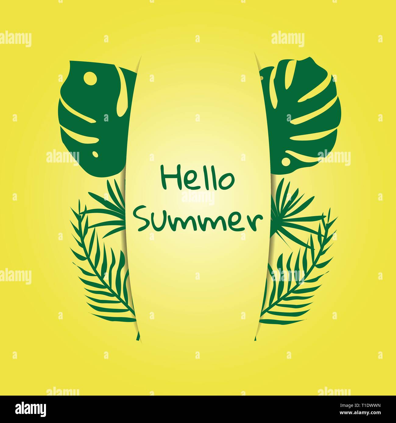 Concept Hello Summer Tropical Plant On Yellow Vector Clipart