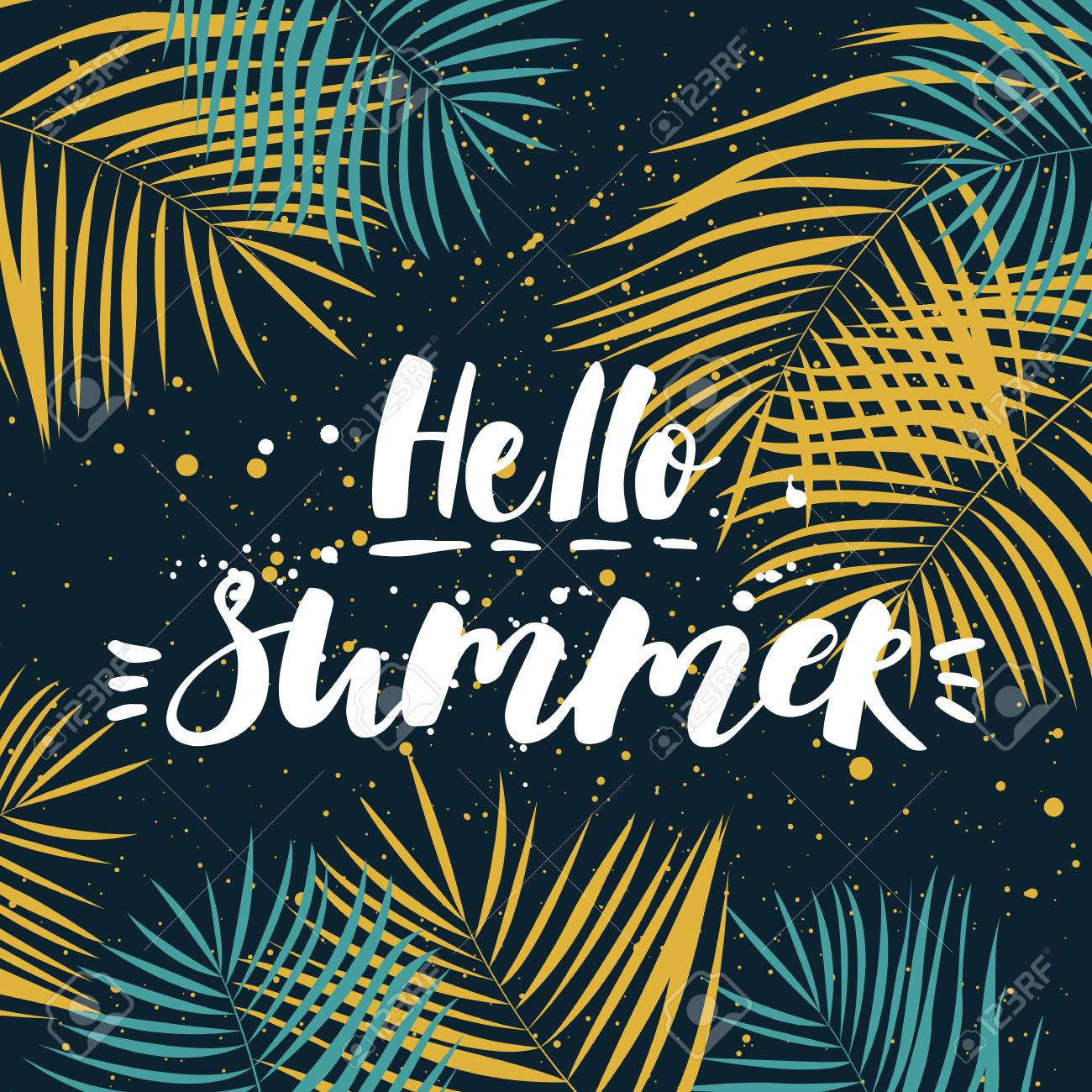 Hello Summer Calligraphic Inscription Summer Tropical