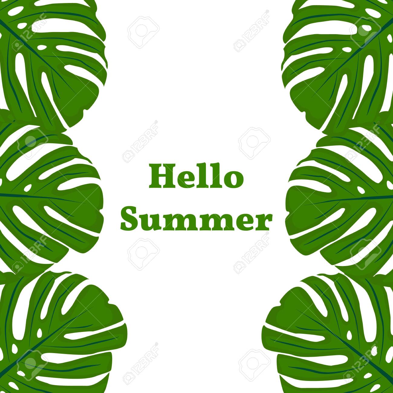 Concept Hello Summer Tropical Plant On A White Background Design