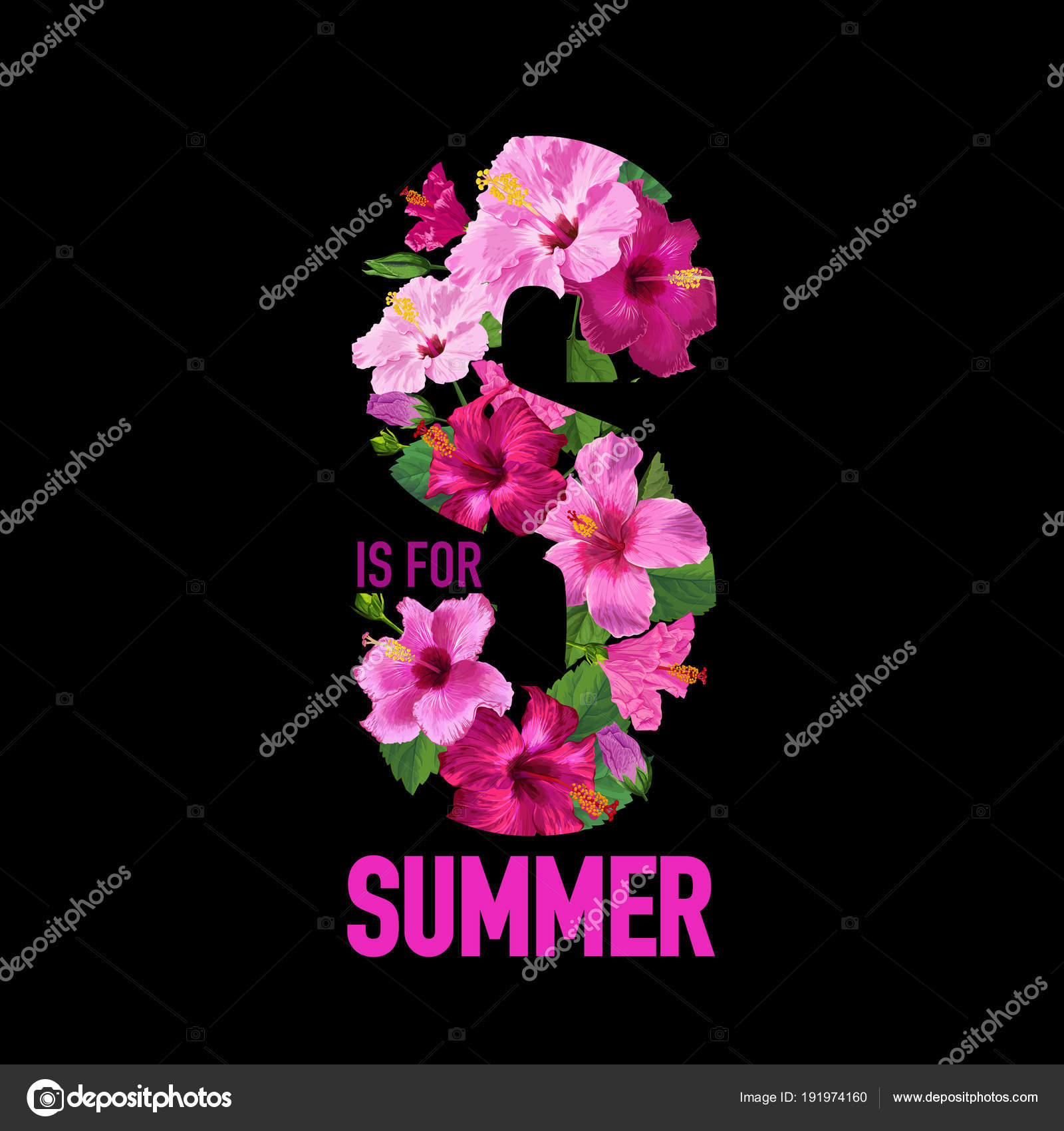Vector Stock Hello Summer Floral Poster Tropical Exotic