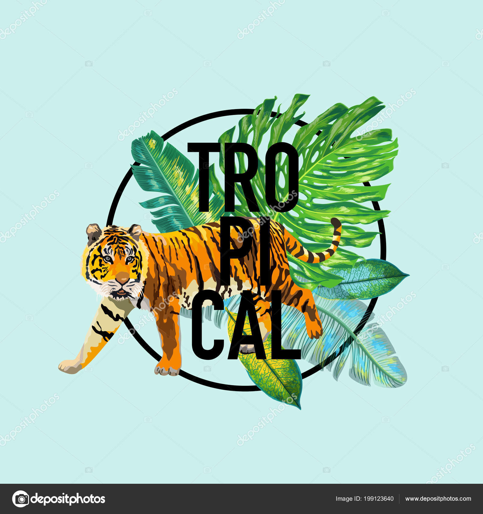 Hello Summer Tropical Design With Palm Leaves And Tigers
