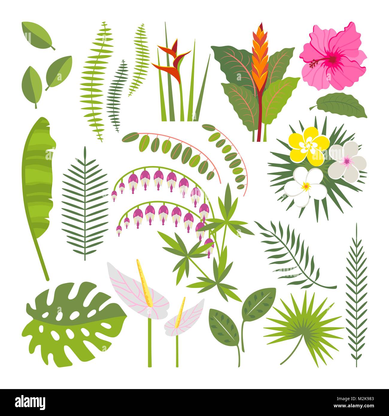 Set Of Tropical Flowers And Leaves Stock Vector Art