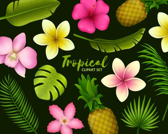 Tropical Flowers And Leaves Clipart Tropical Clip Art Collection Vector Graphic