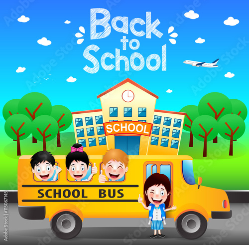 Happy Students Riding School Bus Going Back To School