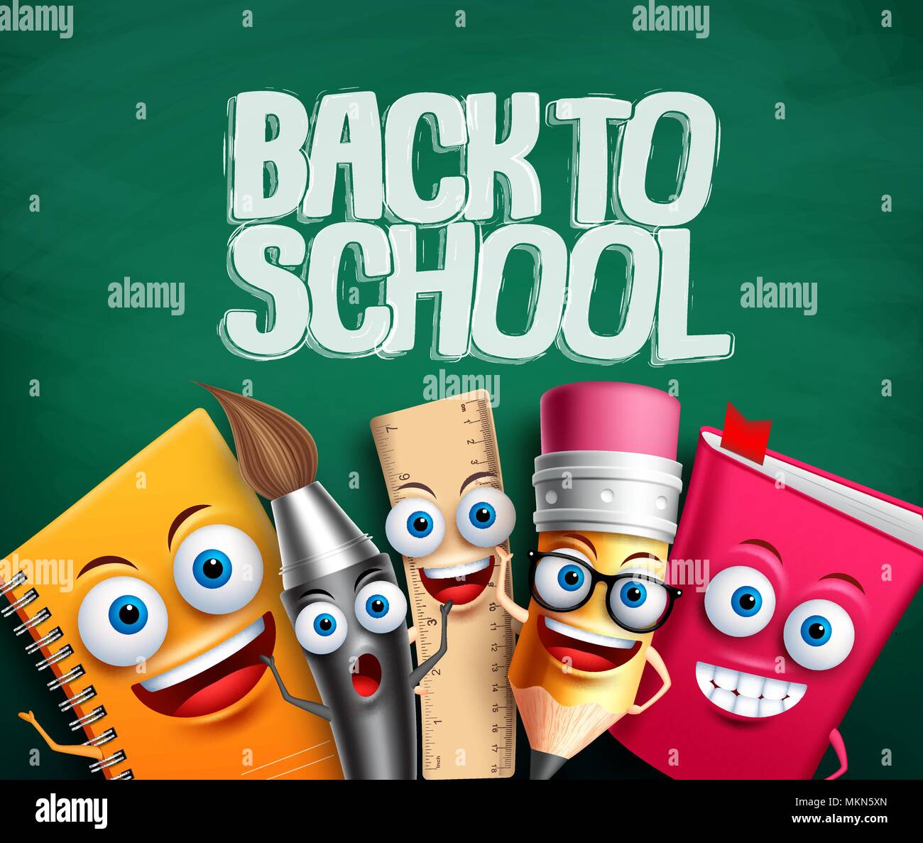 Back To School Vector Illustration Welcome Banner With School Supplies Cartoon Characters