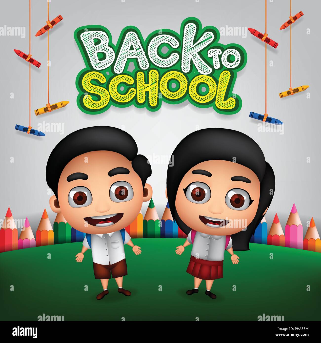 Back School Vector Characters Background Template Stock