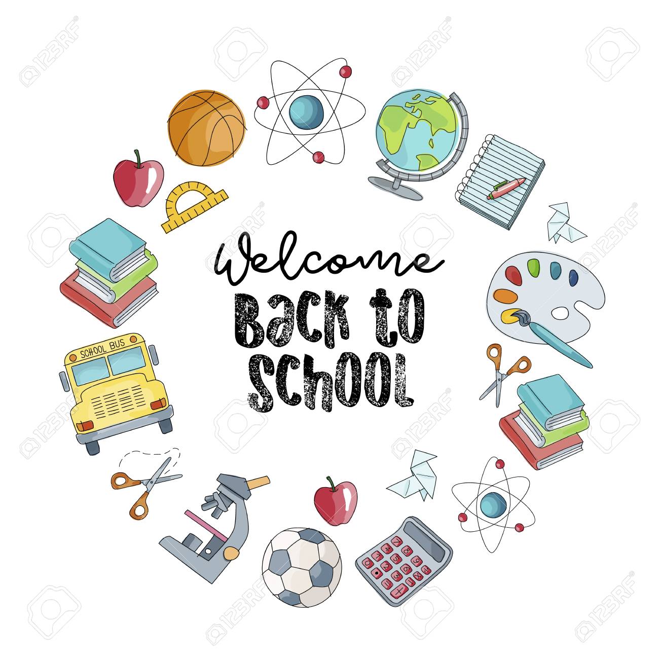 Welcome Back To School Vector Illustration Colorful Sketch Of