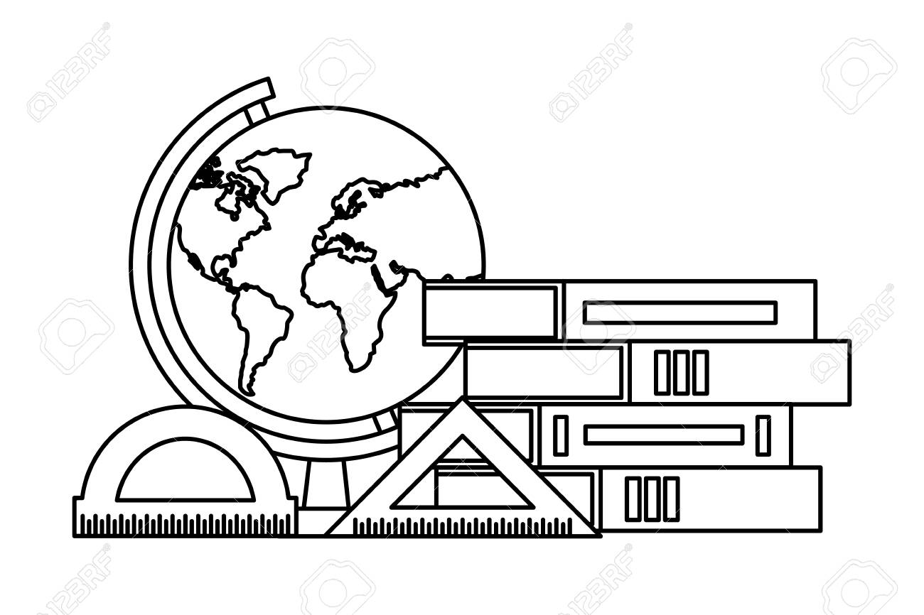 Books Map And Protractor Back To School Vector Illustration Outline