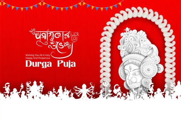 Happy Durga Puja Greeting Card Design With Illustration Of
