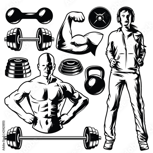 Isolated Isolated Illusrtation Of Fitness Girl Mighty Men