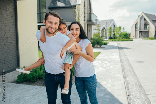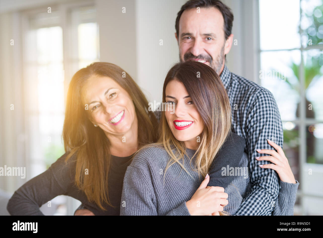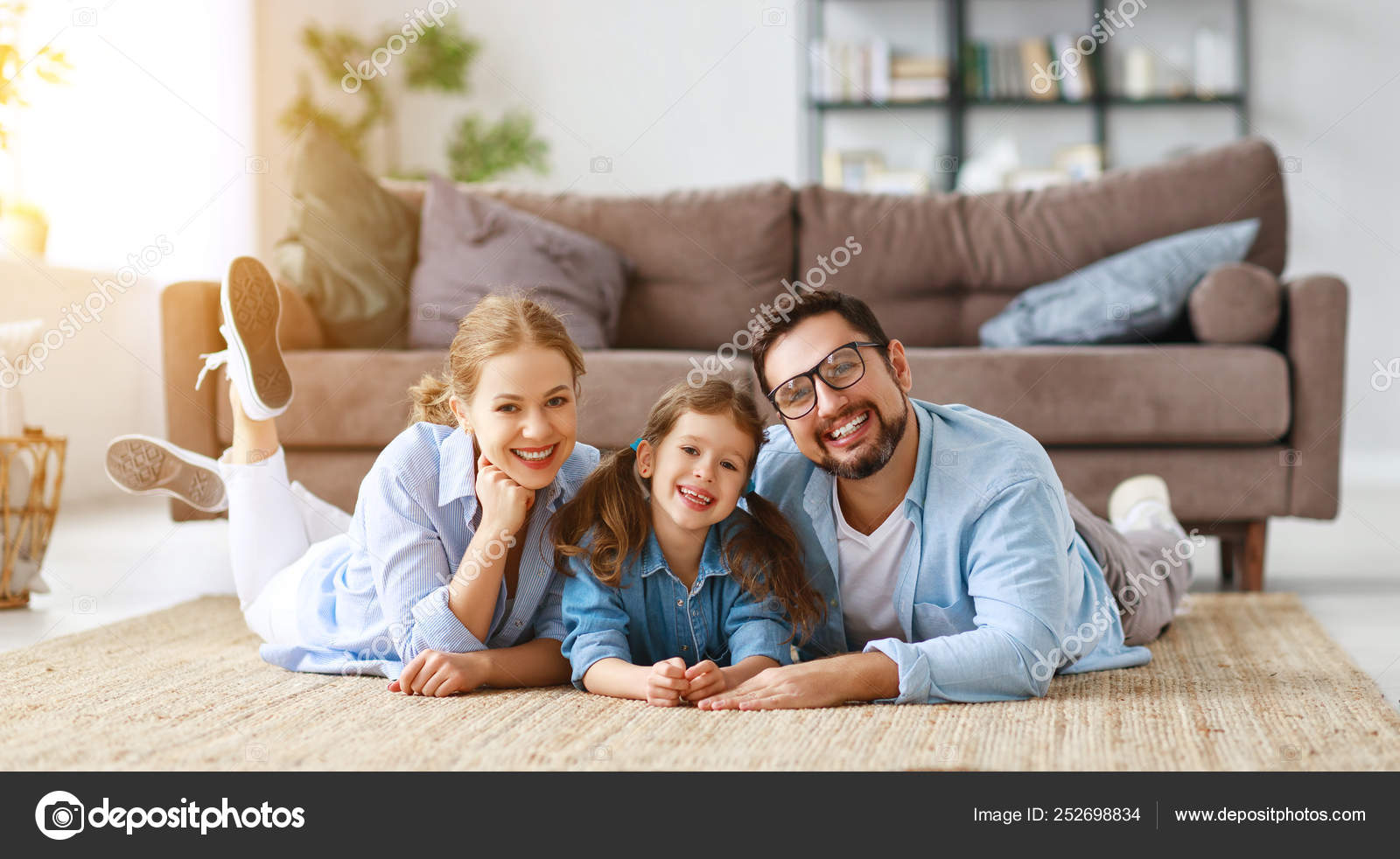 Happy Hispanic Mother Father And Daughter In Front Of Their