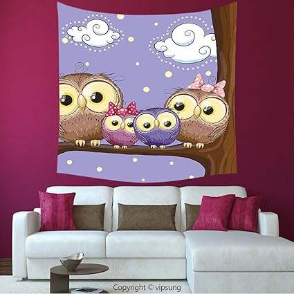 House Decor Square Tapestry Kids Decor Cartoon Style Owl