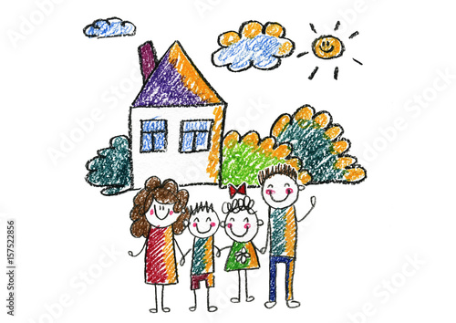 Kids Drawing Happy Family Mother Father Stock Illustration