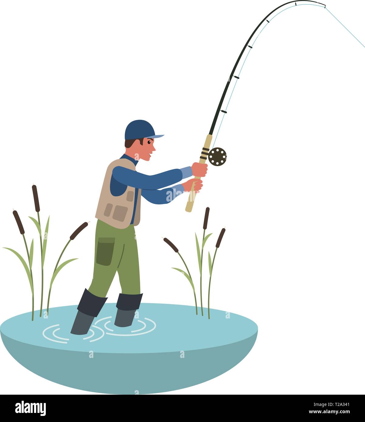 A Fisherman Holding A Fishing Pole Stock Vector