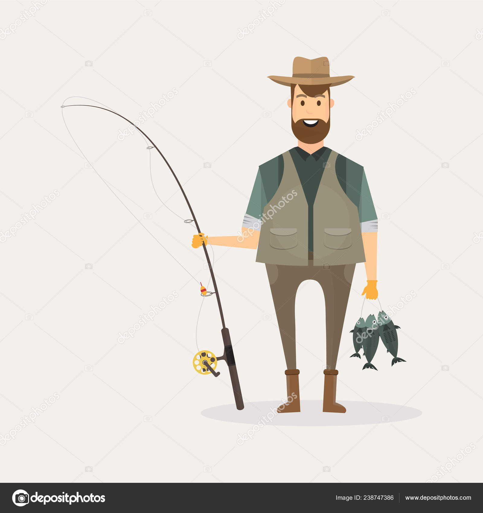 Fisherman Character Holding A Big Fish And A Fishing Rod