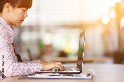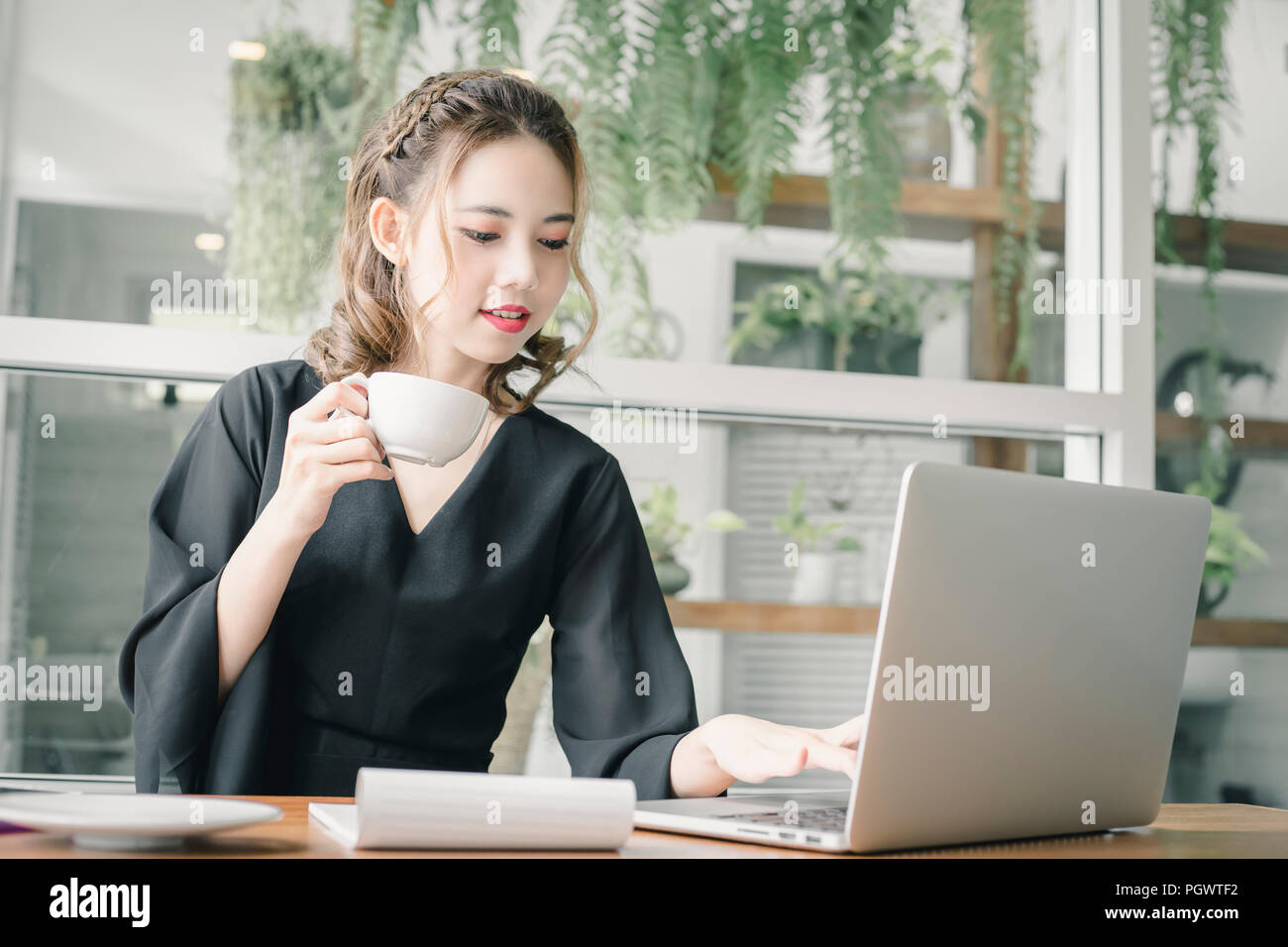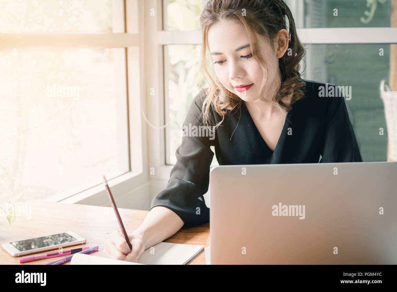 Portrait Beautiful Asian Freelancer Woman Working Stock