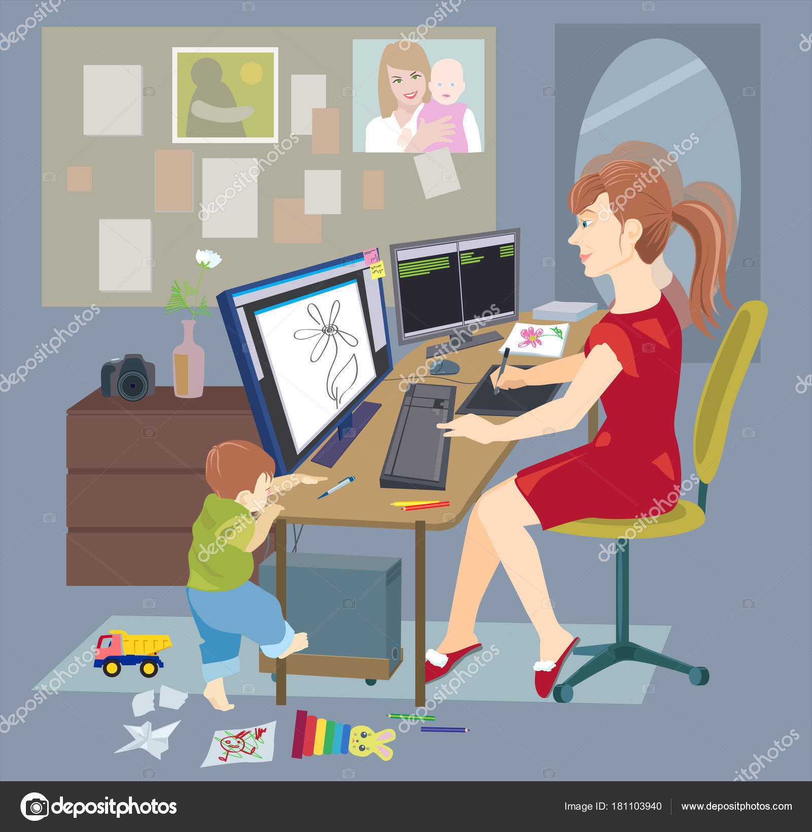 Young Adult Woman Working Home Vector Stock Vector Royalty