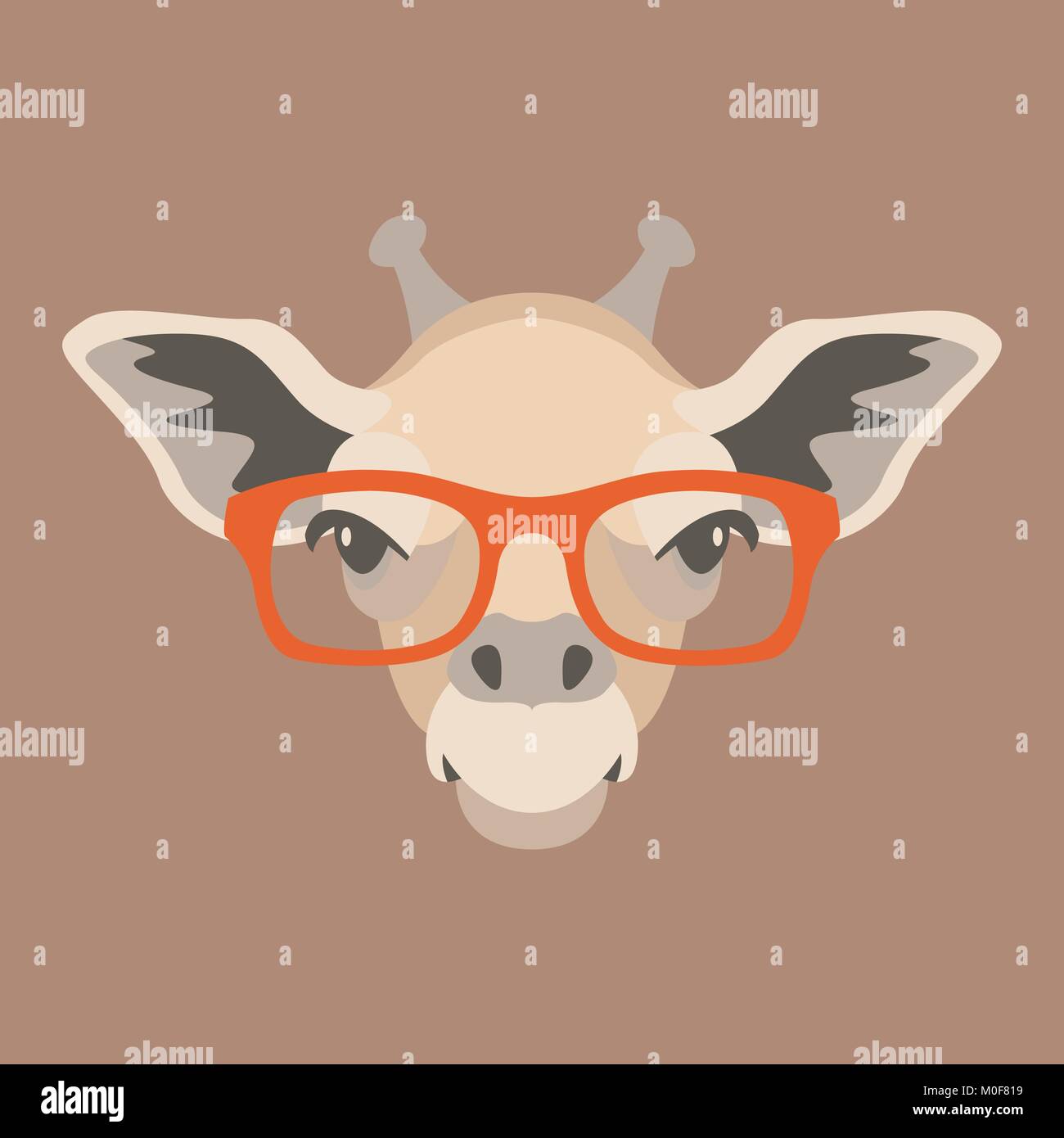 Giraffe Face In Glasses Vector Illustration Flat Style Front