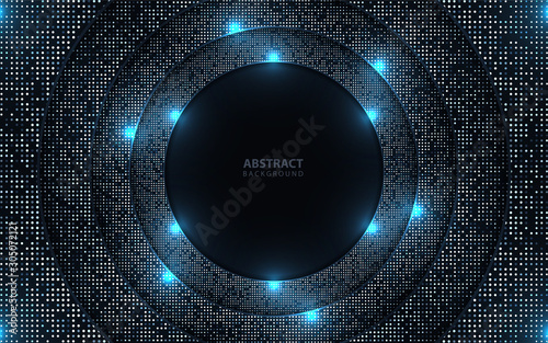 Blue Circle Label Center With Golden Dots Pattern Glitter