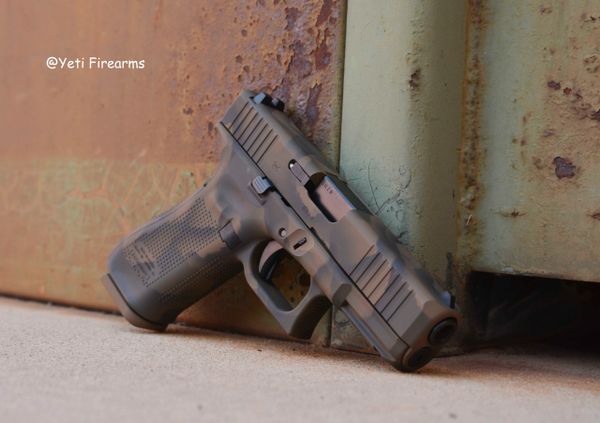 Glock 45 9mm Luger Compact Semi Auto Pistol 4 02 Barrel 17 Rounds Night Sights Apollo Custom Basketweave Stipple Polymer Frame Dark Earth Cerakote