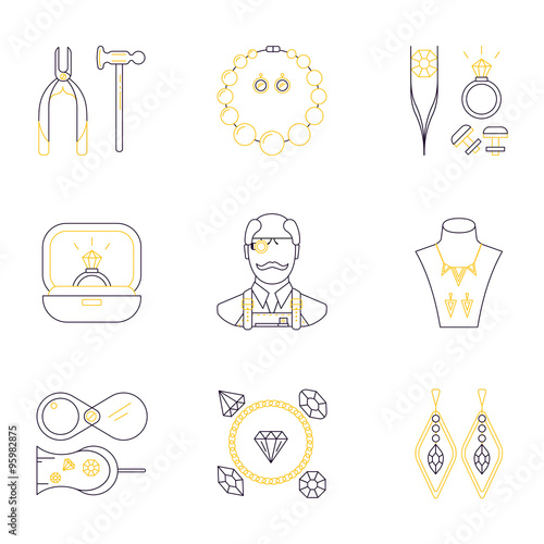 Set Of Jeweler Profession Linear Icons Vector Concept Of