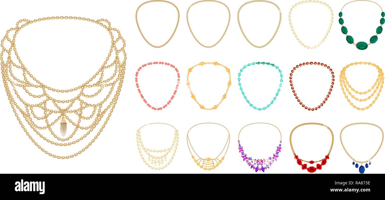 Necklace Jewelry Chain Icons Set Cartoon Style