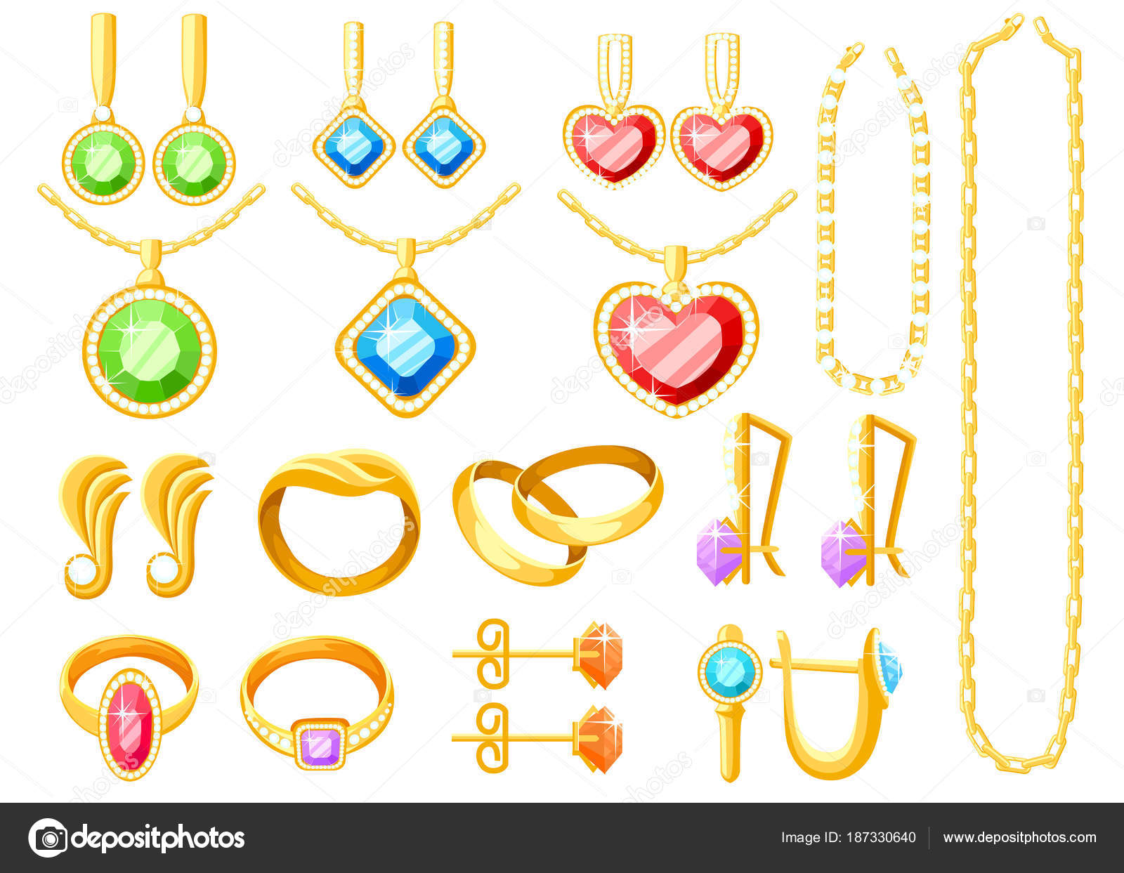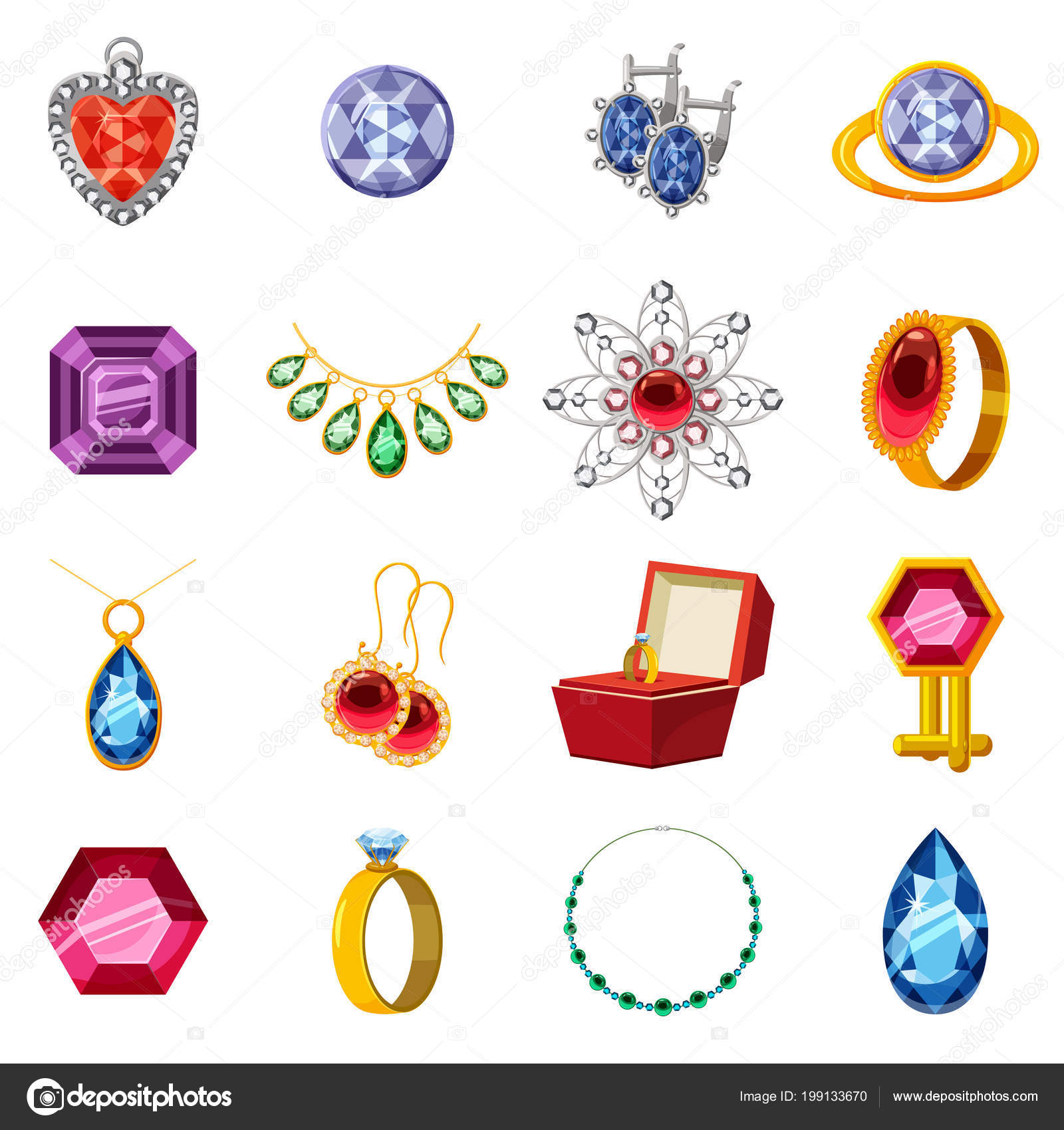Jewelry Items Icons Set Cartoon Style Vector Premium Download
