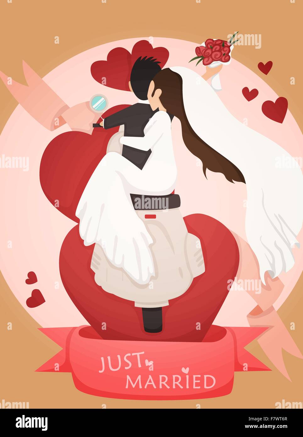 Just Married Wedding Couple Card Design Vector Illustration