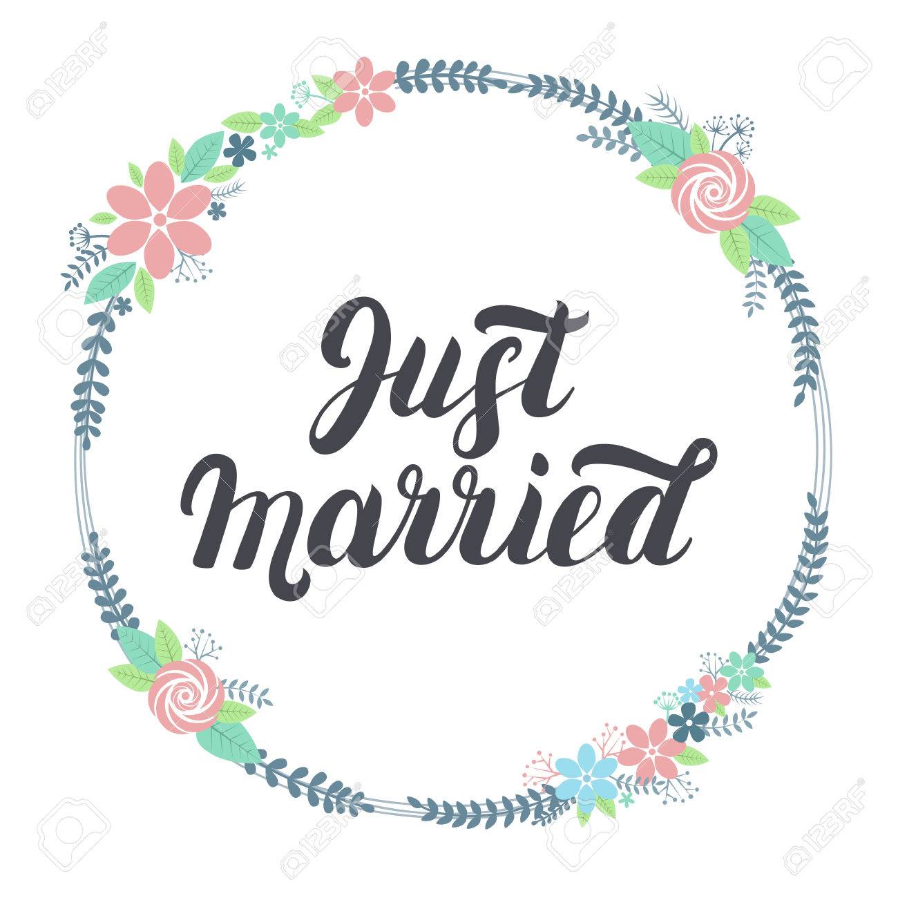 Just Married Lettering With Floral Wreath Lettering For Design