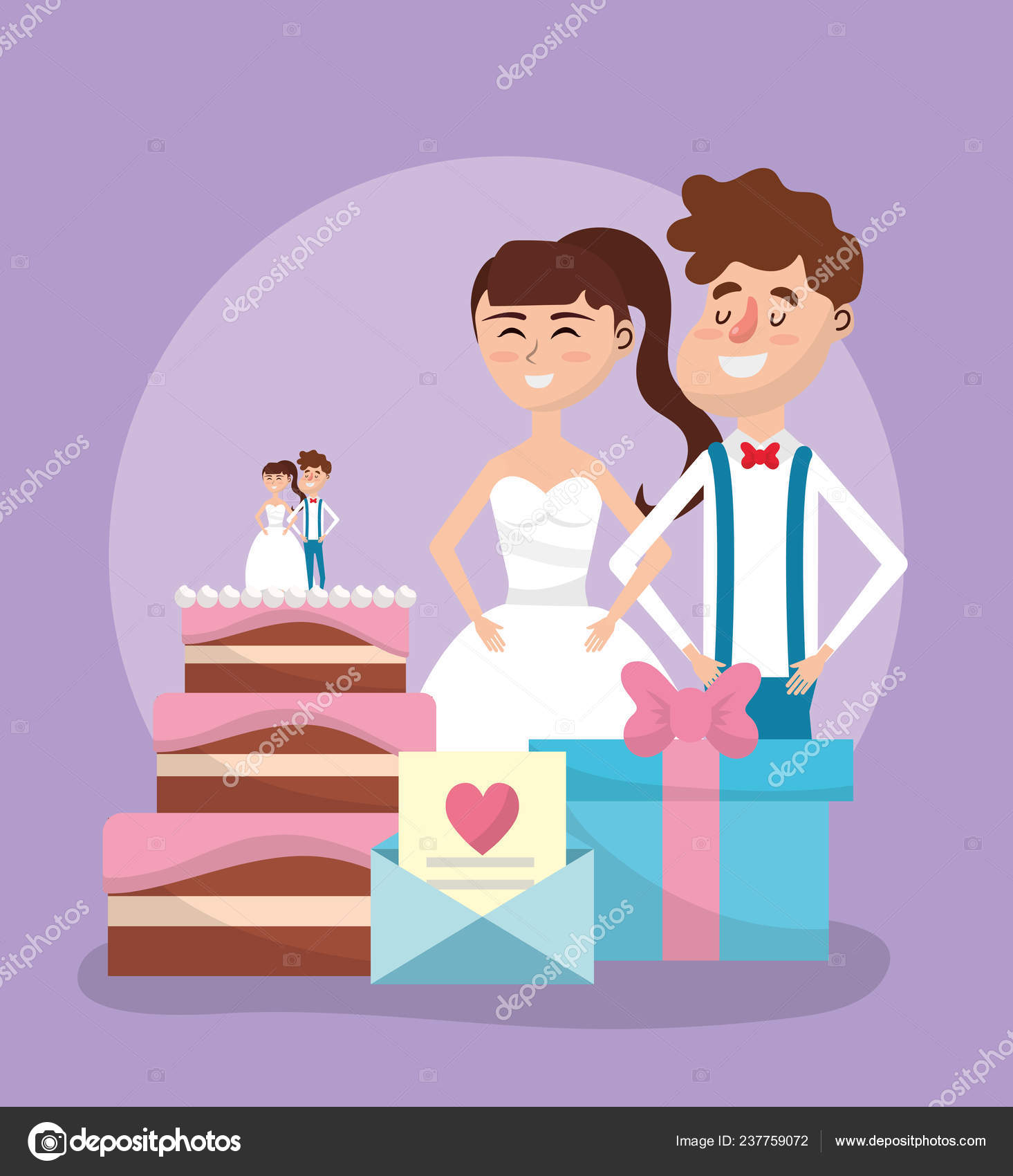 Just Married Invitation Card Cartoon Vector Illustration
