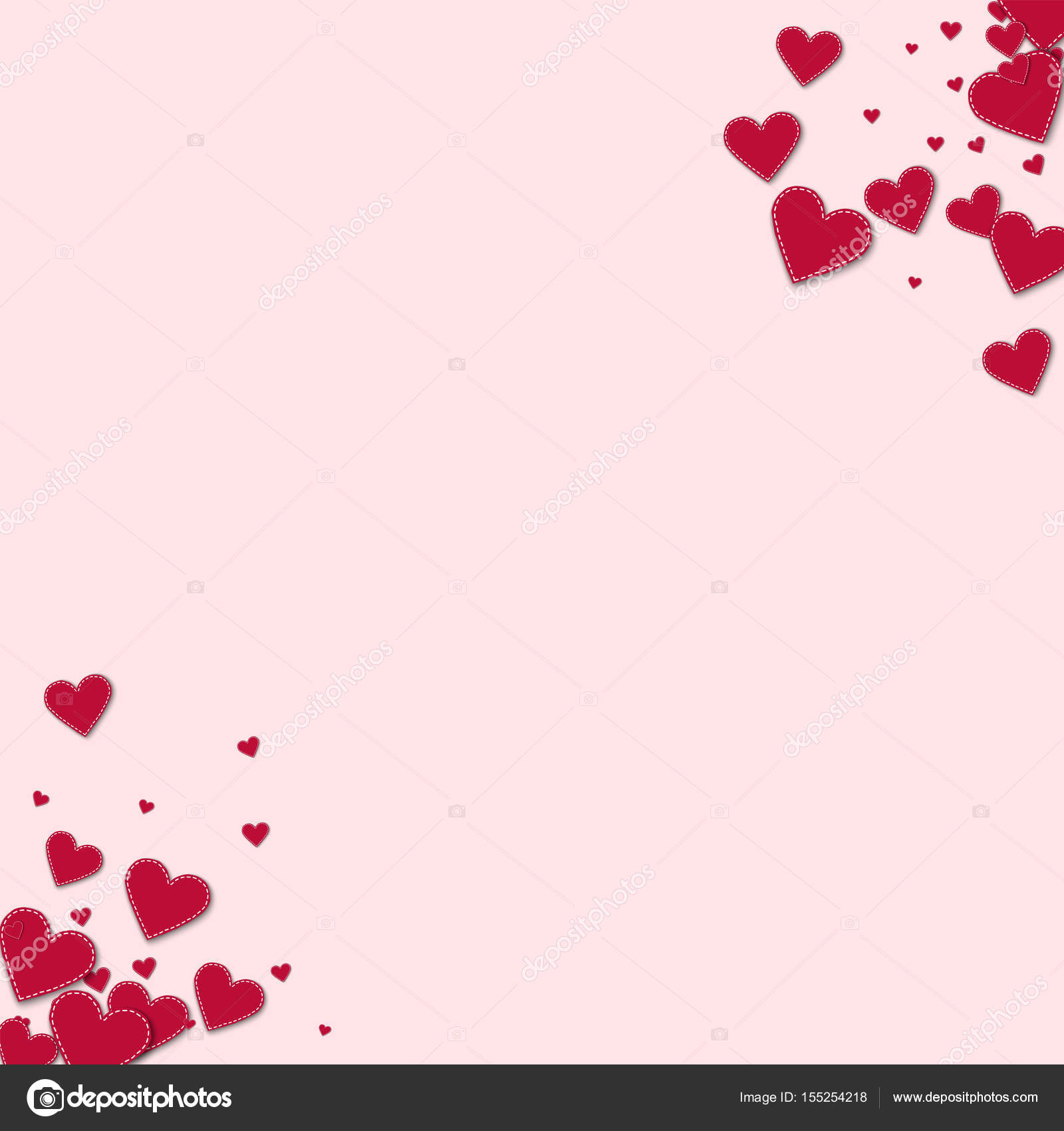 Red Stitched Paper Hearts Circular Corners On Light Pink