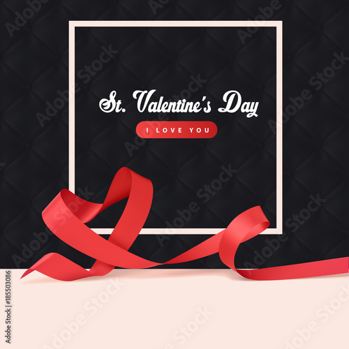 Black Upholstery Background And Red Ribbon Heart Shape With