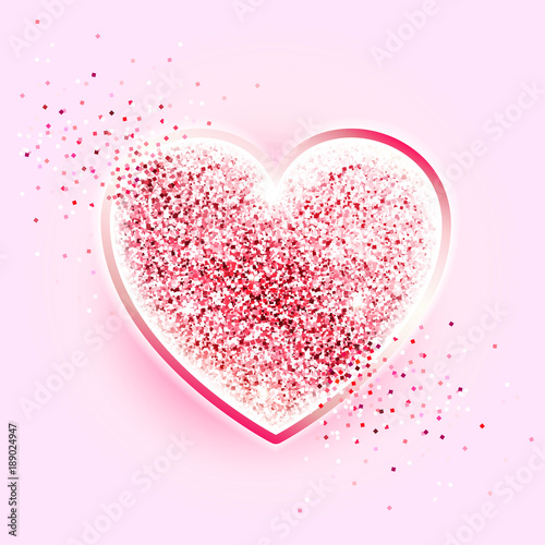 Luxury Red Heart On Pink Background Happy Valentines Day Glitter