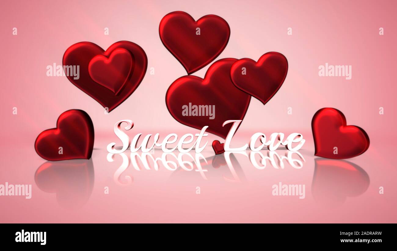 Closeup Sweet Love Text And Romantic Heart On Valentines Day
