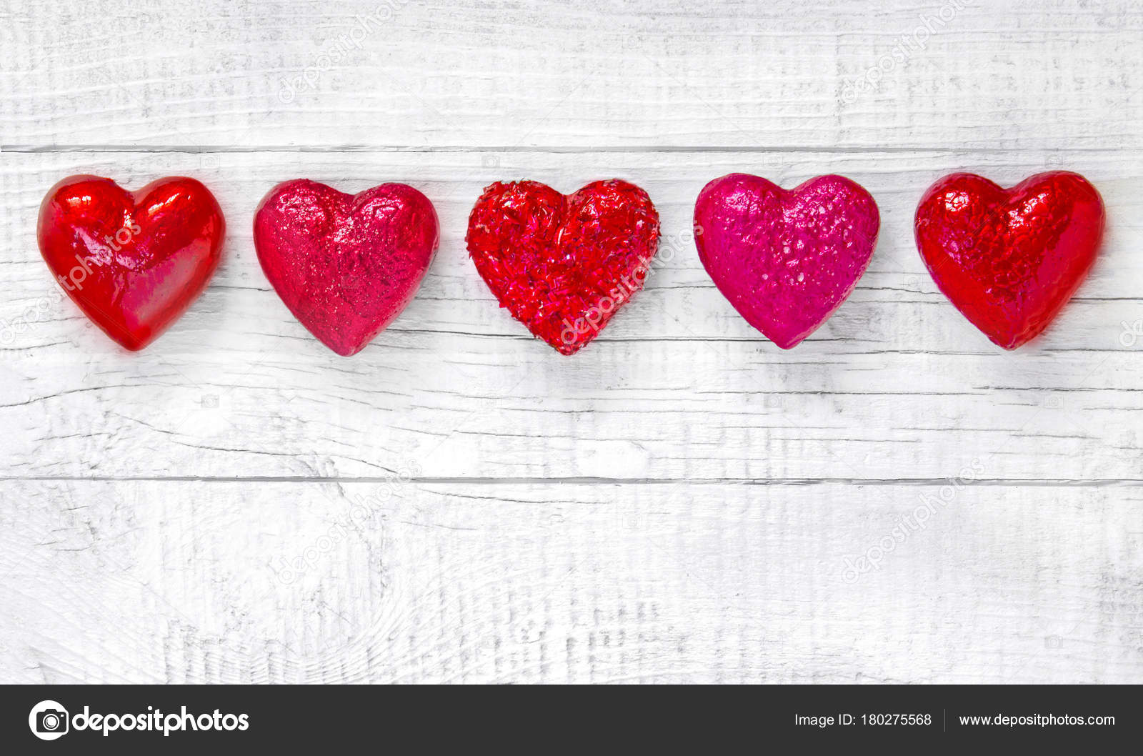 Luxury Red Hearts White Wooden Background Happy Valentines
