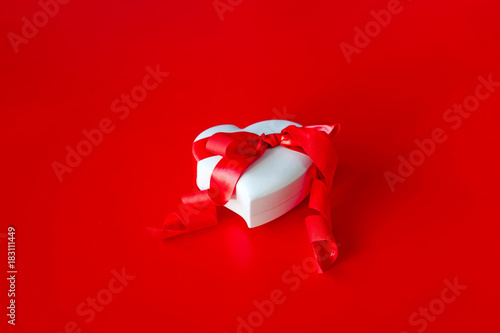 Beautiful Luxury Red Heart Shape From Wire Ribbon On White